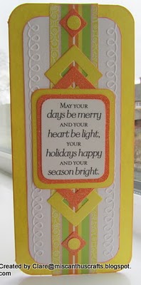 laurie from SCS deborah earns kudos for that gorgoues texty background & her clean and classy design; with bonus points for fabulousness in the "tall card" format!