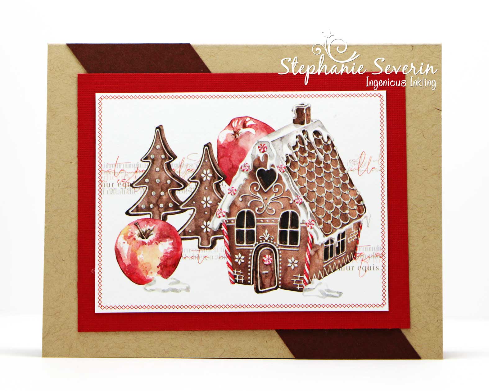 Stephanie says, "I cut into a hoarded piece of Alexandra Renke's German Treats designer paper for this card (and more on my blog). Since the paper is so lovely, I kept the cards simple. Her gingerbread and apples look good enough to eat ... apples always remind me of Christmas, because there was always one in the toe of our stockings."