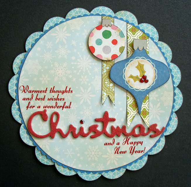 ...combined a bunch of current challenges to produce this show-stopping round card with stunning ornaments made from an upcycled beverage can!