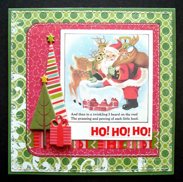 Lauren says, "I think my favorite holiday tradition was reading Clement C. Moore's "Twas the Night Before Christmas" every Christmas Eve. It started with my father reading to my siblings and myself when we were tiny. As we grew, it was quite a big deal the first year each of us was old enough to be the one to read it. Eventually we could all recite it by heart--and to this day, I still can! I treasure the first story-book copy I was given as a tiny girl, and as an adult I've collected a dozen or so more, and am always on the lookout for pretty vintage versions. This card uses a scaled-down color-copied page from one of my favorite editions, with illustrations by Zillah Lesko."